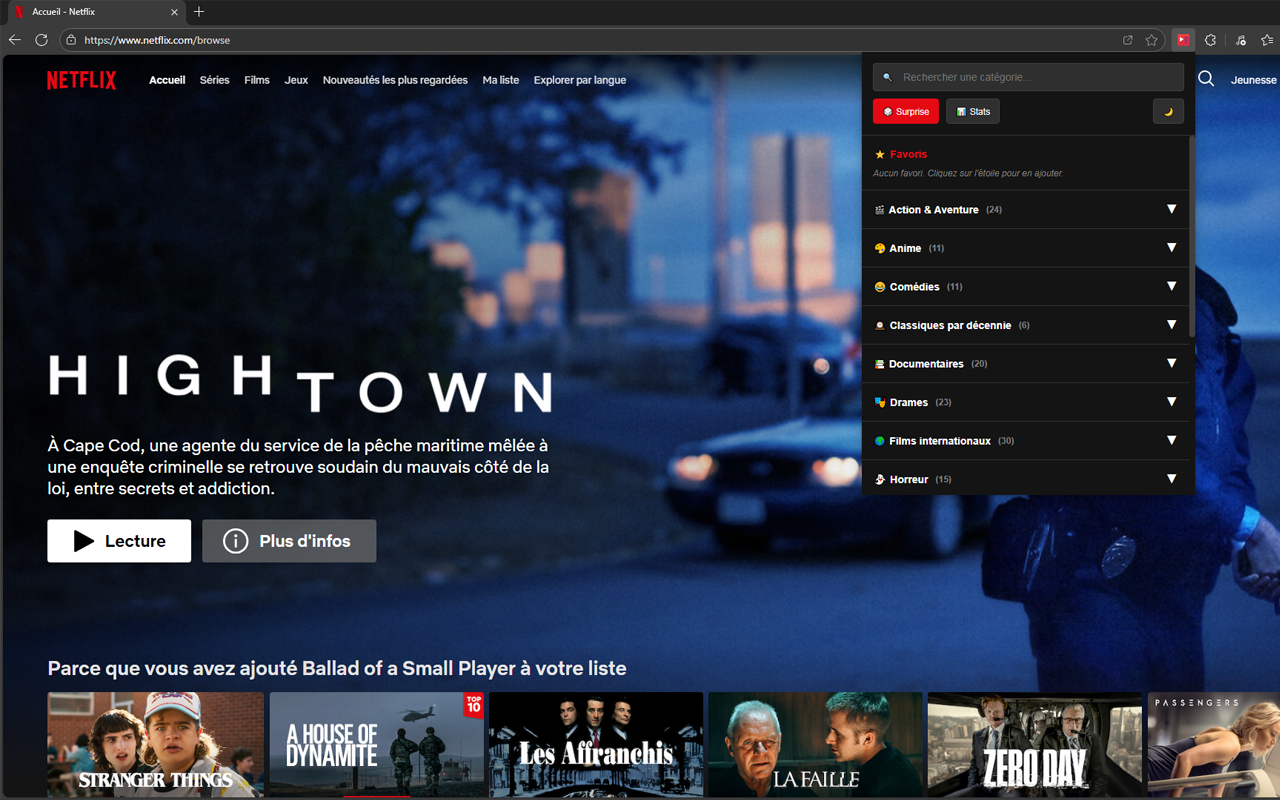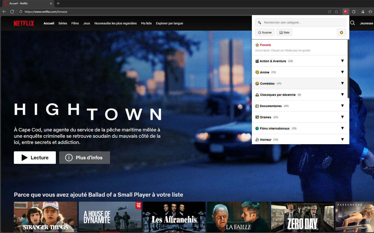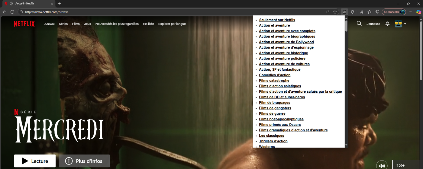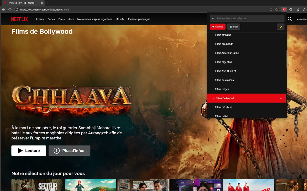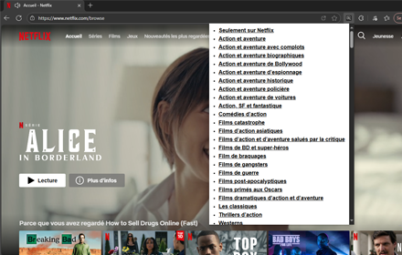 Avec Netflixate, libérez-vous de ces suggestions limitées et explorez en profondeur les films et séries cachés dans les tréfonds de Netflix. Parcourez l’ensemble des catégories disponibles et accédez à encore plus de contenus en un seul clic.